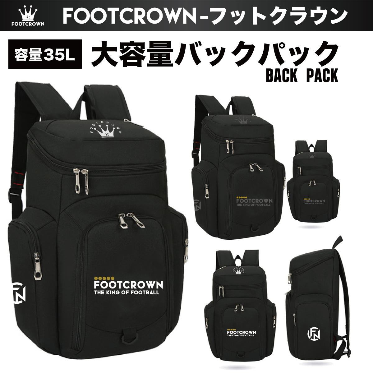 フットクラウンのバックパックは、サッカー・フットサルシーンをはじめ日常使いにもフィットする多機能バッグです。
