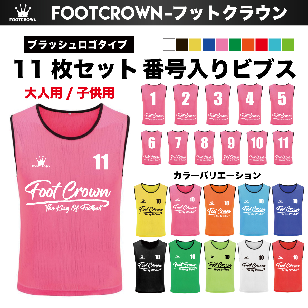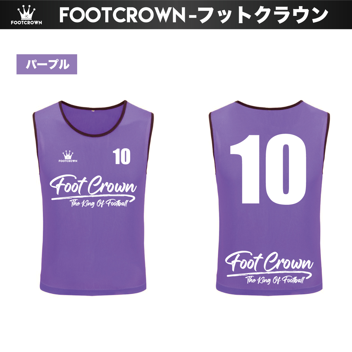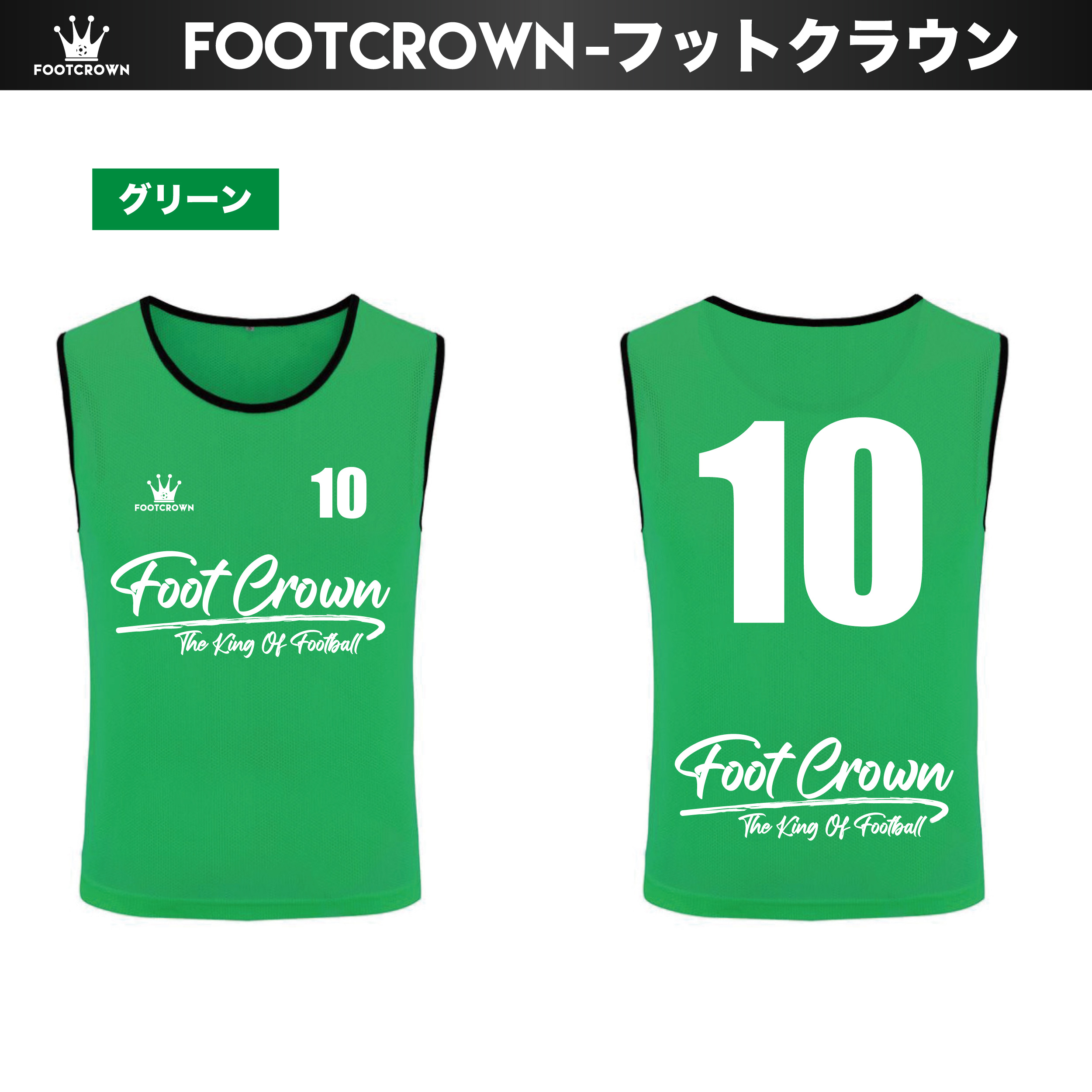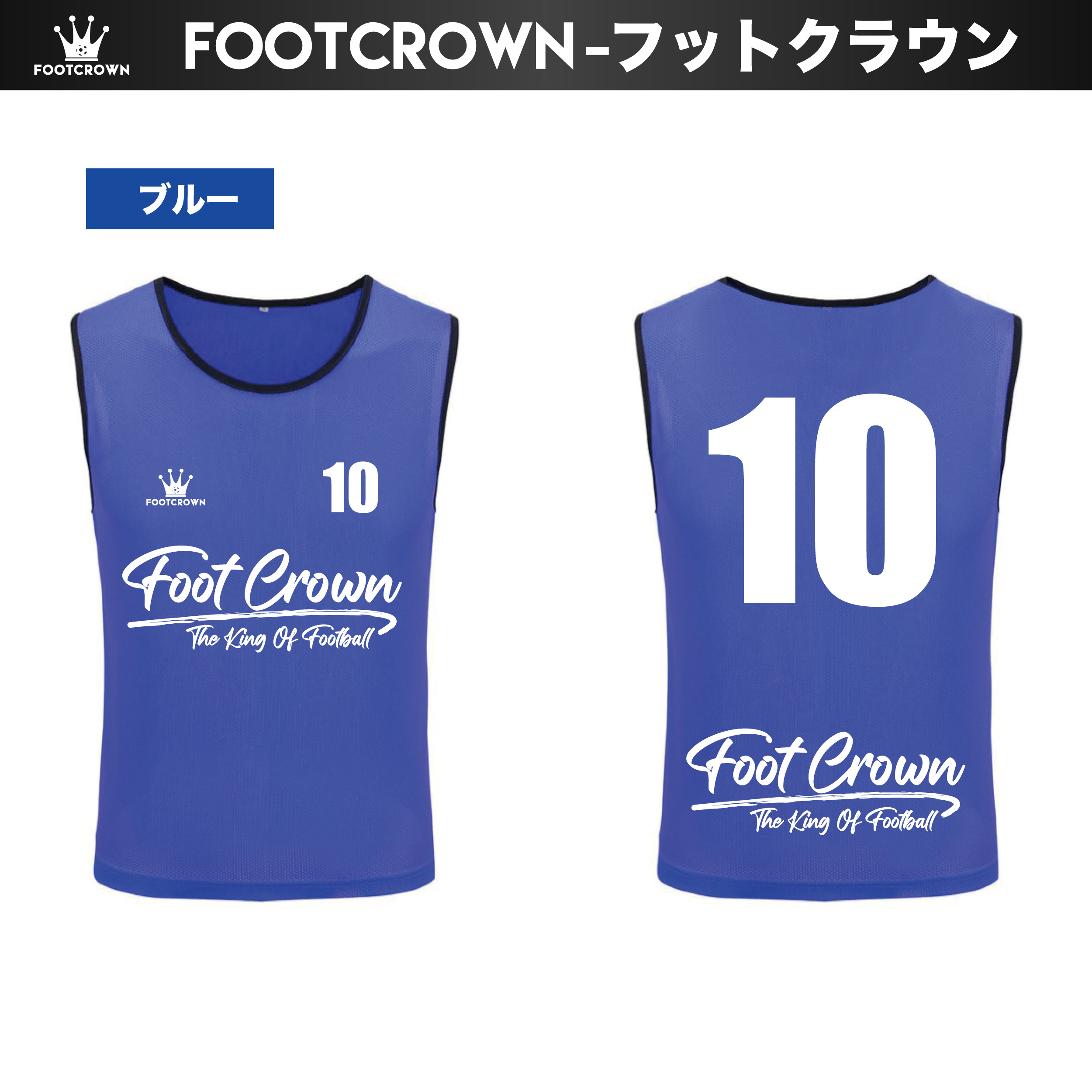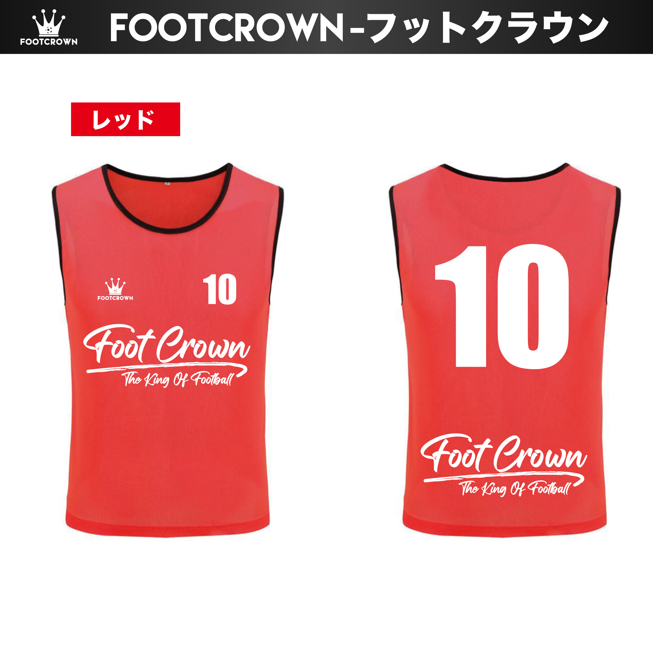 フットクラウンのビブスは、番号プリント済みのセット販売のため、届いてすぐに練習や試合で使用できます。