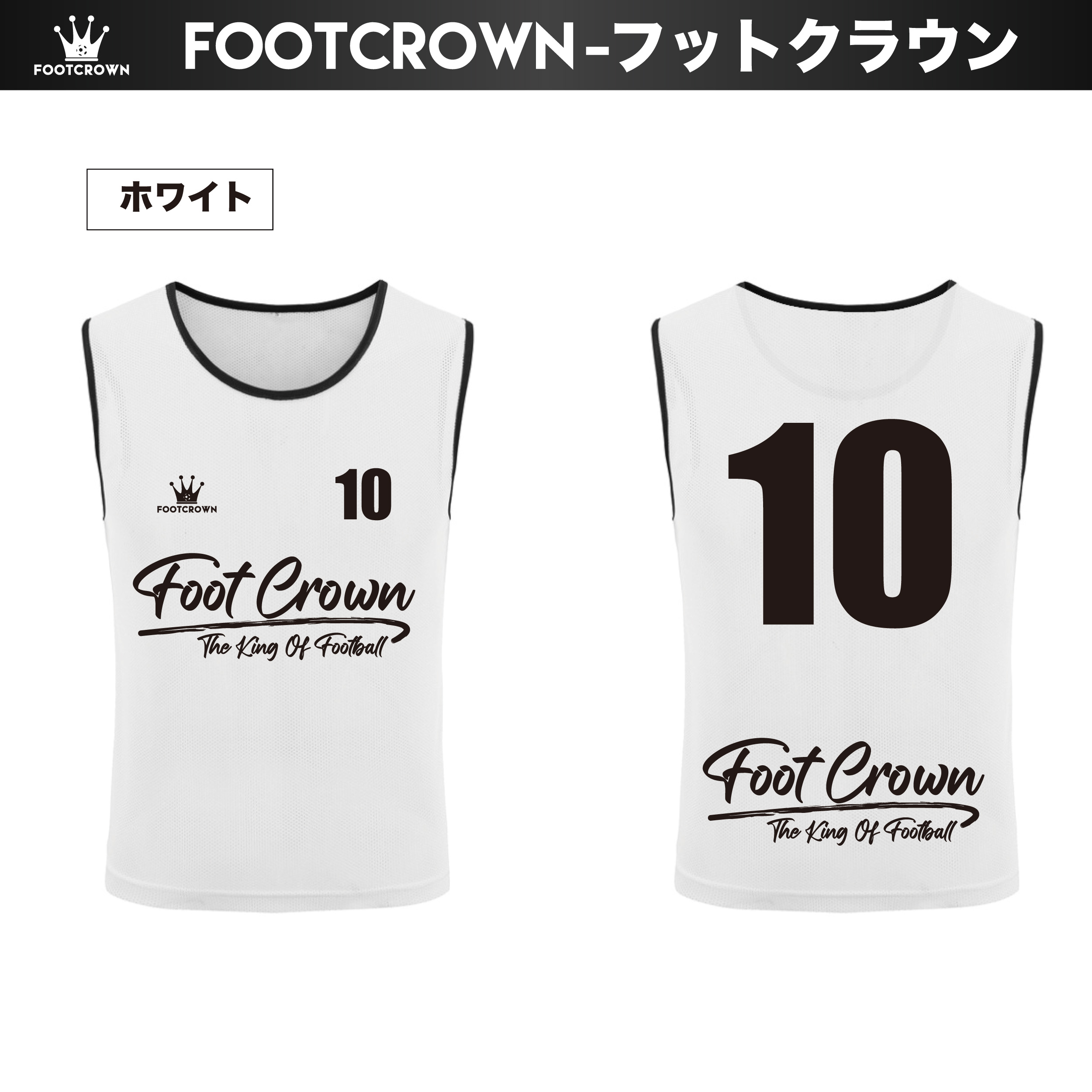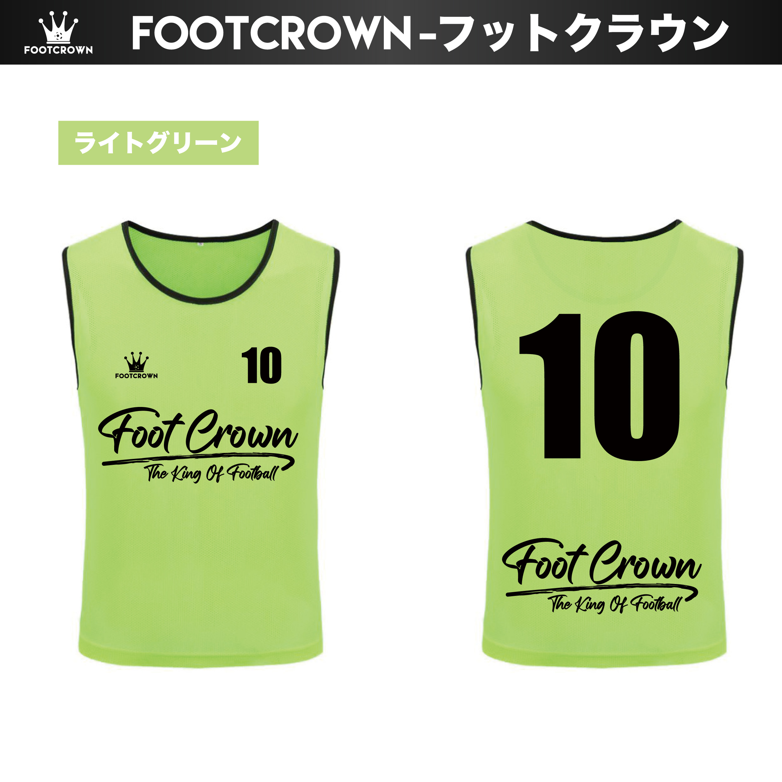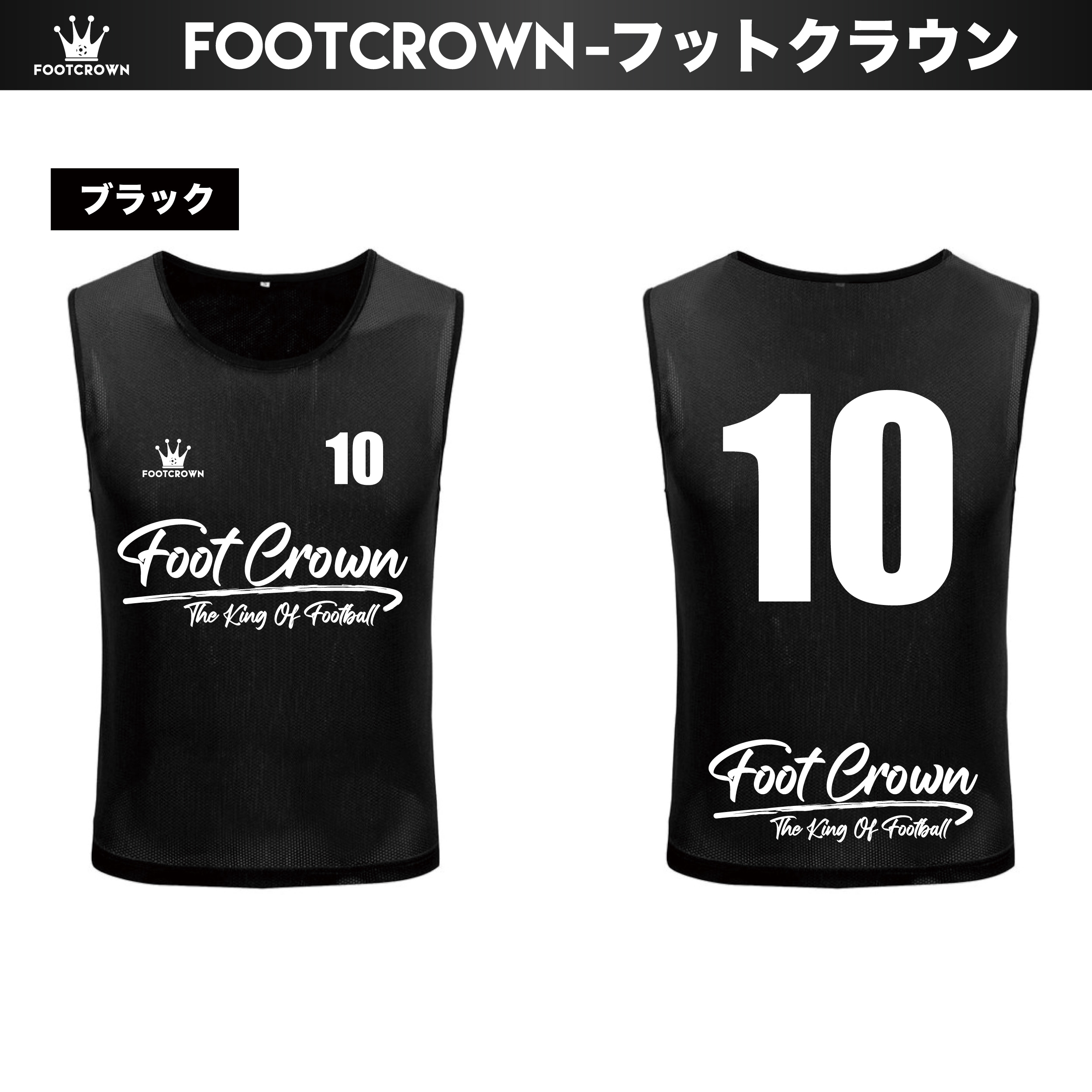フットクラウンでは、独自の筆記体ロゴ(ブラッシュロゴ)をあしらった、他にはないスタイリッシュなメッシュビブスをご用意しました。