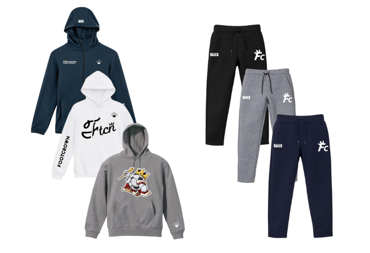 パーカーは、試合会場への移動や練習前後の防寒着・リラックスウェアとして活躍するアイテムです。 そのため、プレー後の体を冷やさない保温性や、長時間着ていても疲れない軽量・快適な着心地が重要になります。 フットクラウンの生地は、汗をかいた後でもベタつかず、移動中も快適に過ごせる速乾性を備えており、多くのチームに選ばれています。