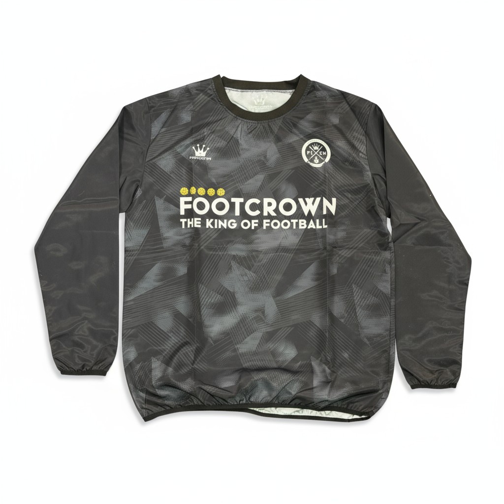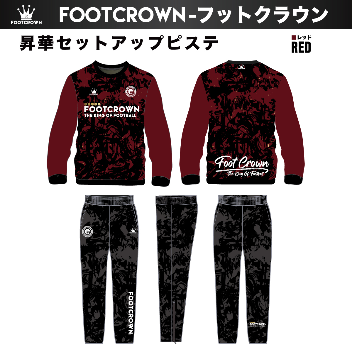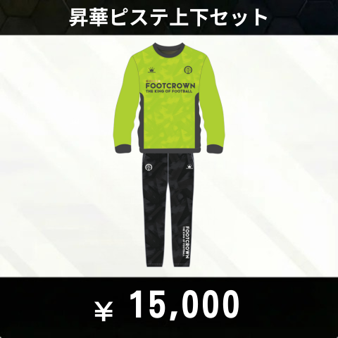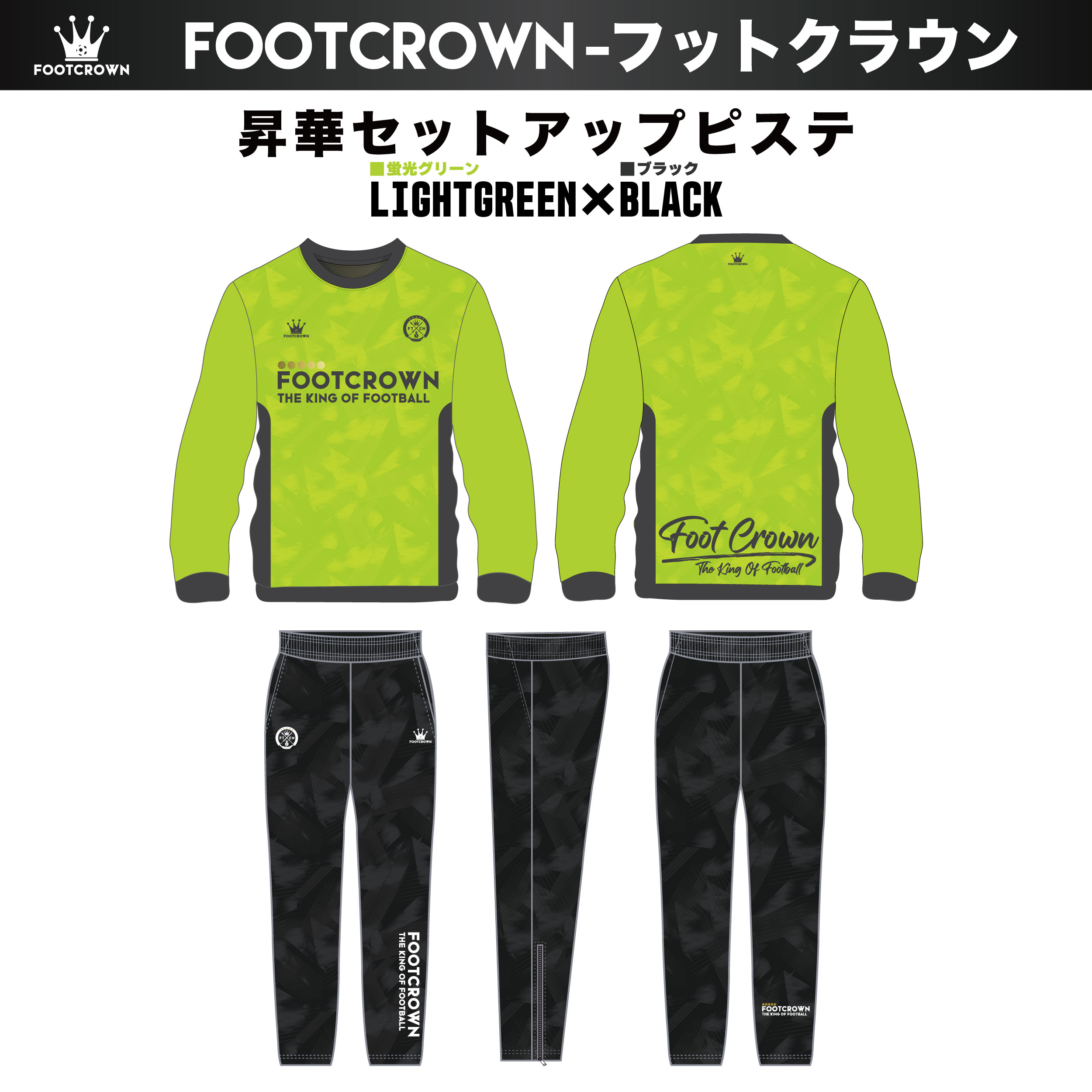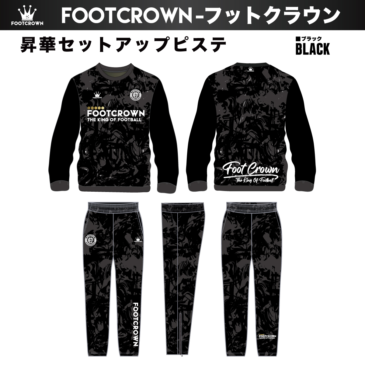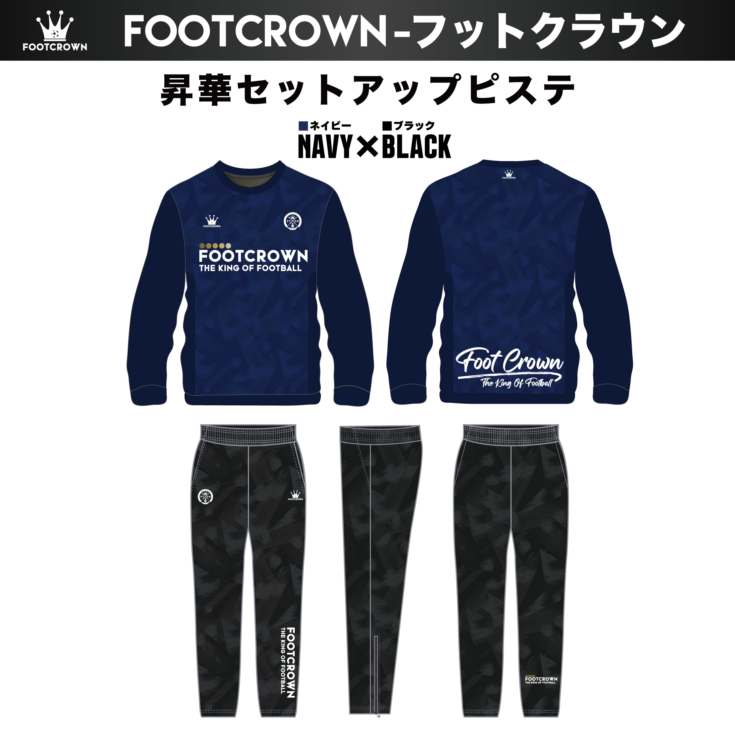 フットクラウンの昇華ピステは、上下セットで制作するチーム向けのウインドウェアです。